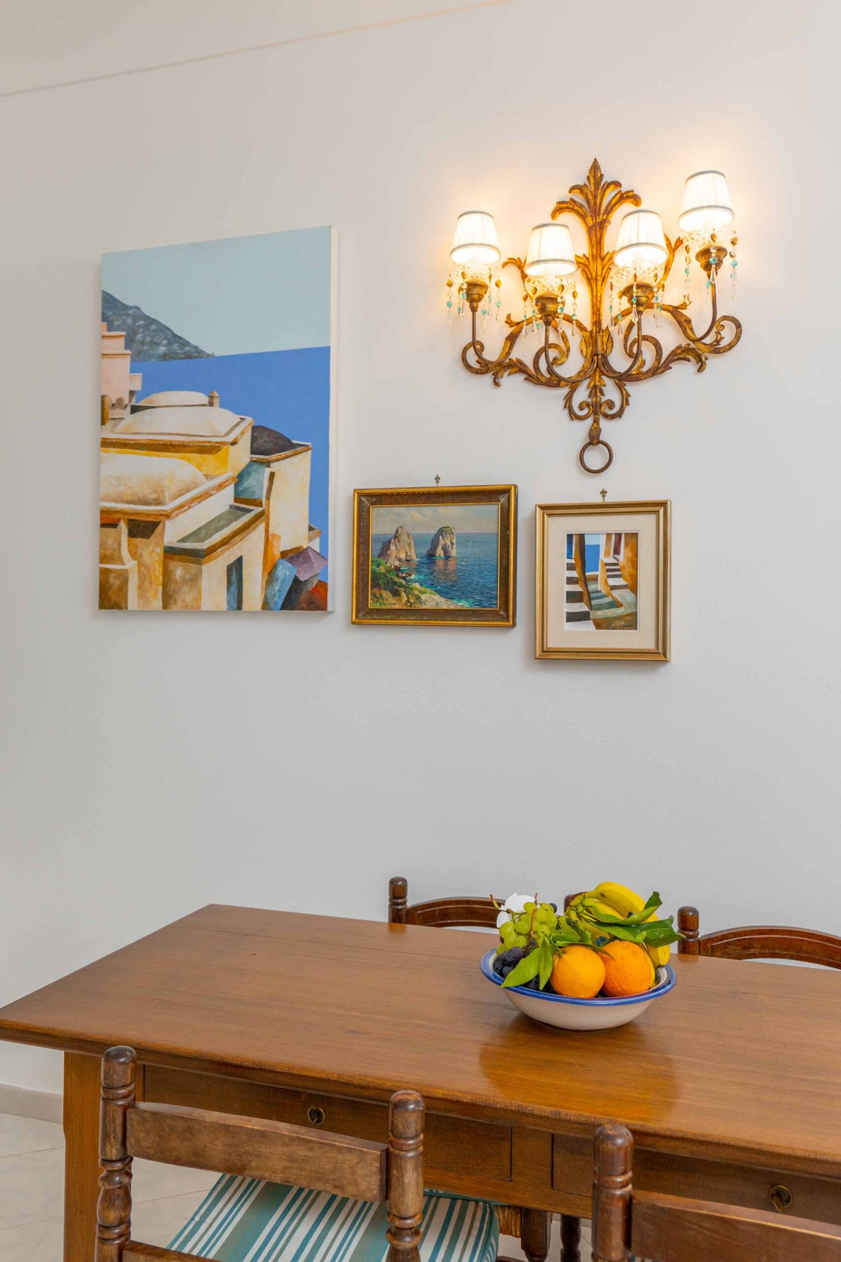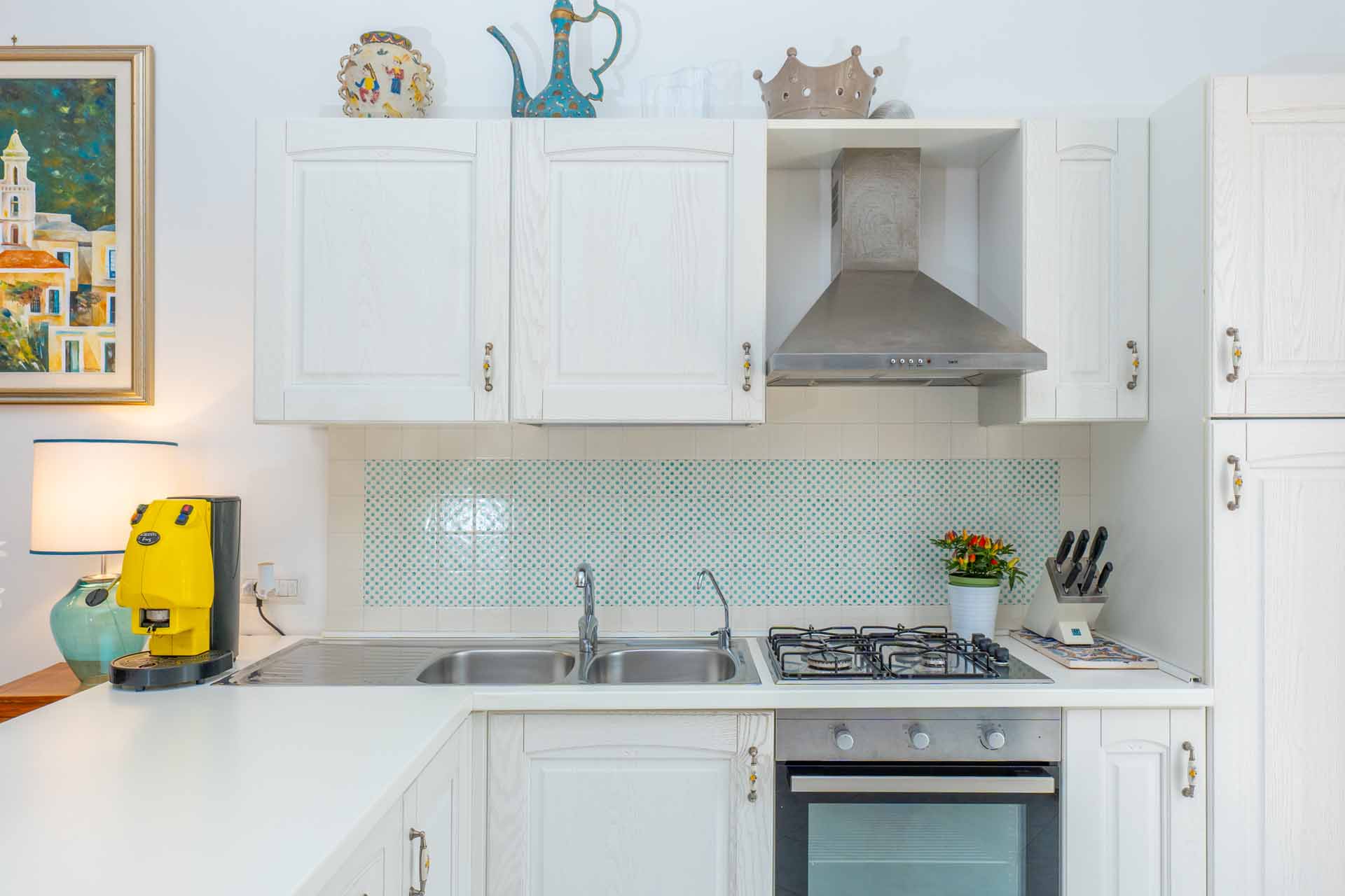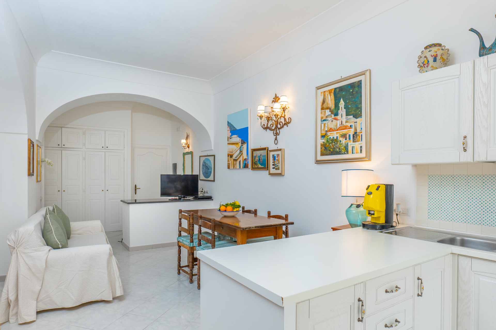 Here you will find all the essential amenities for your stay. The cozy living room consists of a living area with sofa and satellite TV and a dining/breakfast area with table and chairs, refrigerator with freezer, oven, kettle, Italian coffee maker (moka).