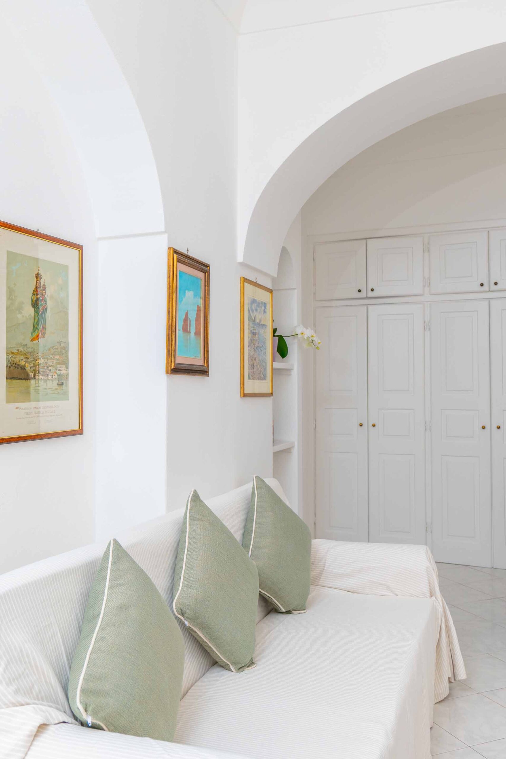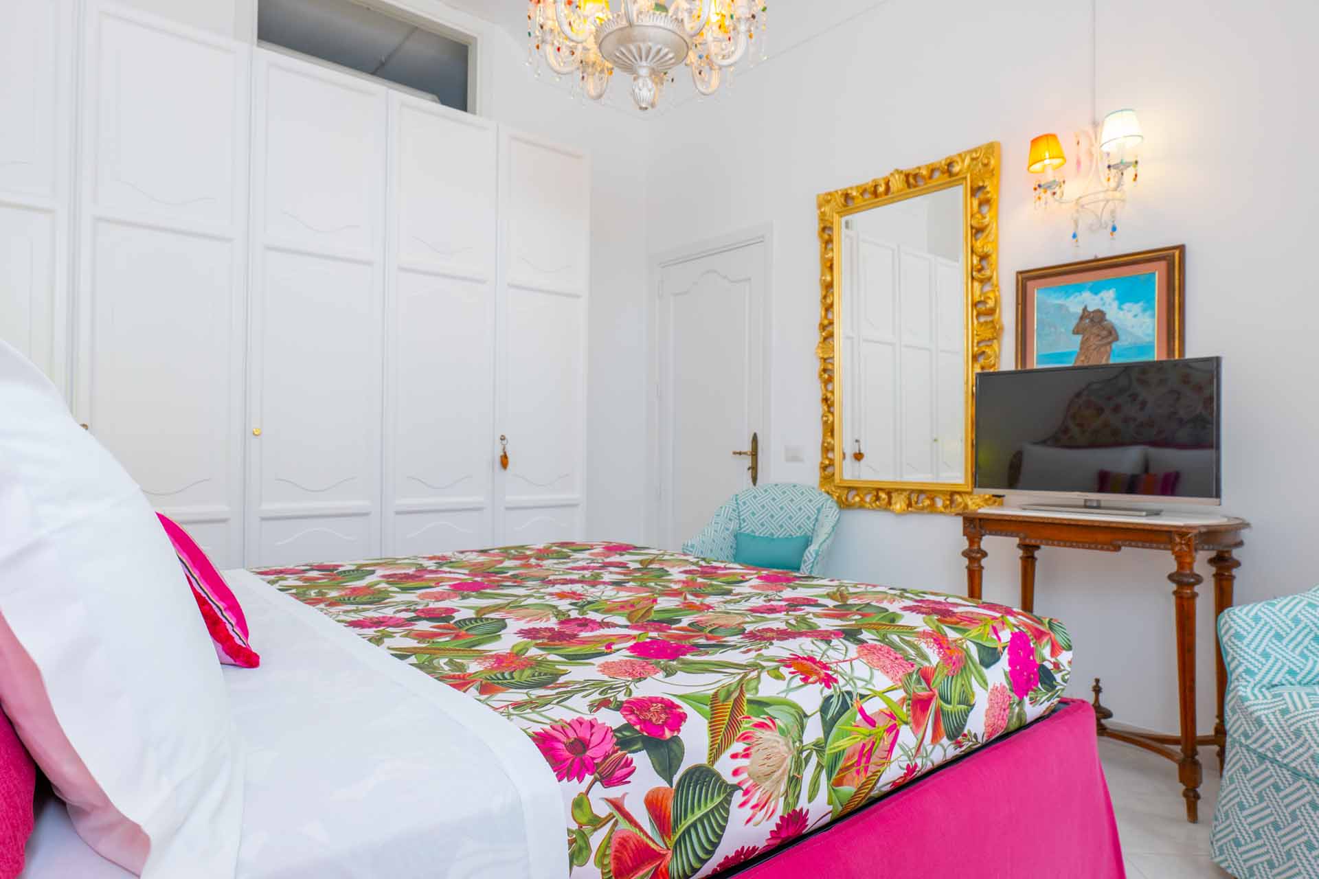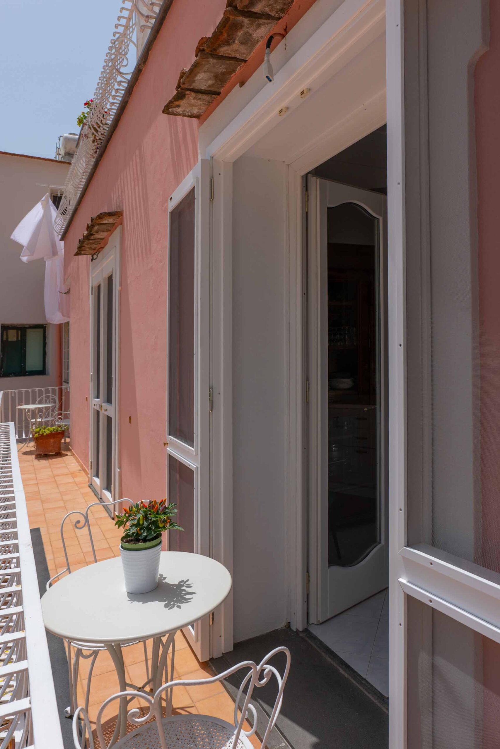 The Postcard apartment also enjoys a small panoramic terrace with a fantastic view of Positano’s pastel-colored houses. It is accessible from the living room and one of the bedrooms and is equipped with a small table and chairs, thanks to which you can enjoy relaxing moments immersed in Positano’s beauty. The private bathroom is equipped with a toilet, bathtub with shower head, towels and toiletries. Apartment Postcard is accessible by a stairway of about 45 small steps.